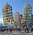 平成24年8月18日(土)~19日(日)に復興支援にかかる包括的提携協定締結先の北茨城市において、「第5回北茨城市民夏まつり(復興祭)」が開催されました。当行は、イベント協力として北都銀行様を通じて「秋田竿燈」を招致しました。秋田市竿燈会、北都銀行竿燈会より総勢33名を北茨城市へご招待し、国指定重要無形民俗文化財「秋田竿燈」の妙技を沿道を埋め尽くした大勢の観客に披露しました。