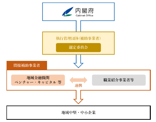 本事業は、転籍や兼業・副業、在籍出向といった様々な形を通じた、大企業から地域の中堅・中小企業(べンチャー企業含む)への人の流れを創出し、地域の中堅・中小企業による大企業人材の確保を後押しすることにより、企業の経営革新・生産性向上を図り、地域経済を活性化することを目的としています。 |