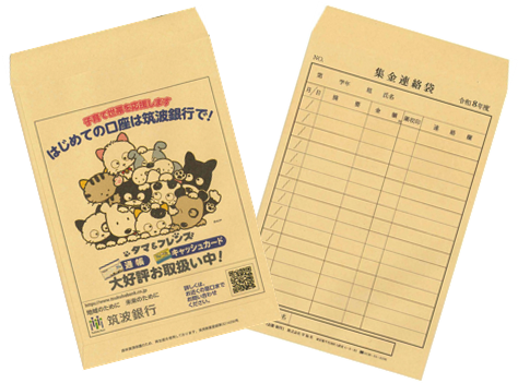 ※「集金連絡袋」のデザインには、地元の児童や生徒に親しみを感じてもらえるよう当行イメージキャラクター「タマ&フレンズ」を使用しております。